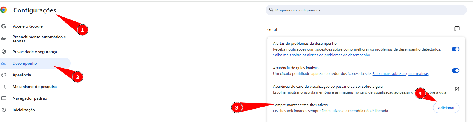 Para contornar, adicionar o site no Sempre manter estes sites ativos (desempenho), imagem do chrome.