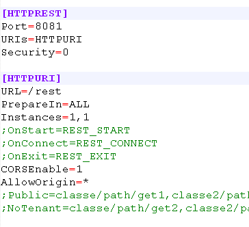 Neste artigo trago as configurações de arquivo .INI para servidor REST que utilizo na minha base local.