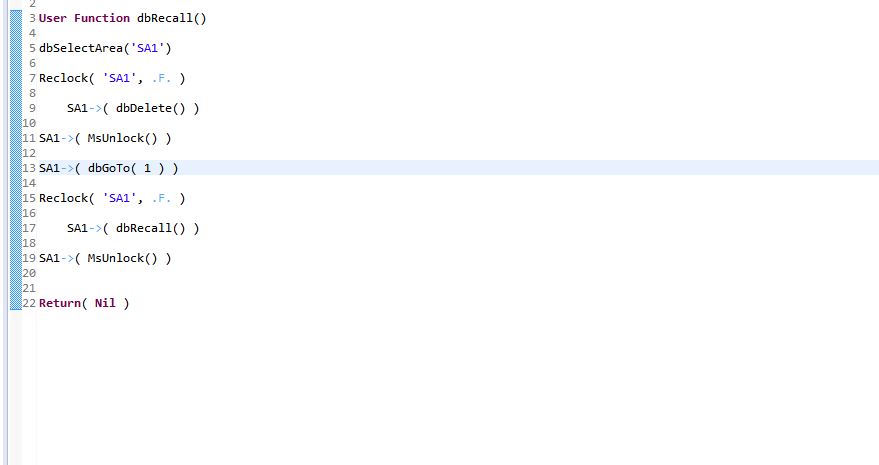 dbRecall [AS] - Desmarca o registro atual caso ele tenha sido marcado para exclusão..