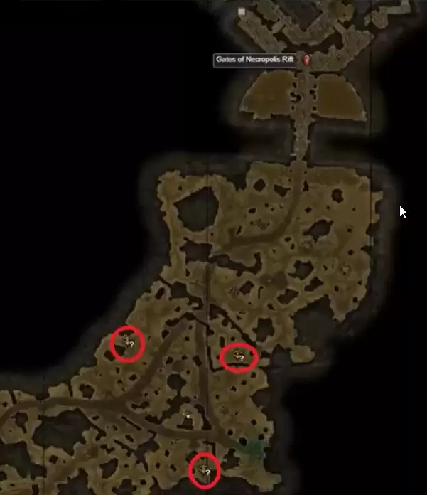 4️⃣ Nos Portões da Necrópole, encontre outro portal vermelho.