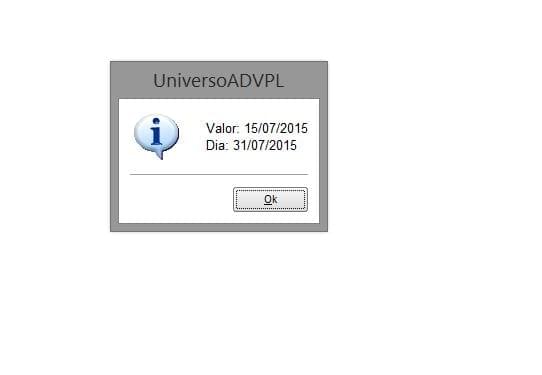+ CRLF + 'Dia: ' + cValtoChar( LastDate( Date() ) ) , 'UniversoADVPL' )