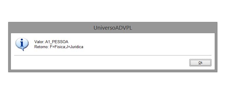 MsgInfo( 'Valor: ' + cCampo + CRLF + 'Retorno: ' + X3CBox(), 'UniversoADVPL' )