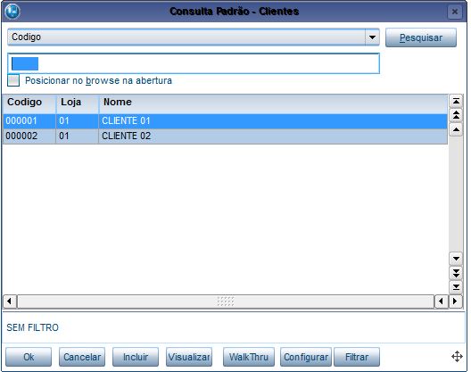 Nome da consulta padrão cadastrada no Dicionário de Dados (SXB) a ser utilizada |
