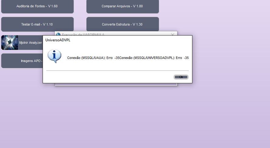 cMsg += 'Conexão (MSSQL/UNIVERSOADVPL): Erro ' + Str( nRet, 4 )