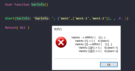 A função VarInfo é uma ferramenta poderosa para desenvolvedores ADVPL que desejam inspecionar, visualizar e depurar variáveis de forma clara. Ela permite mostrar o conteúdo completo de arrays, objetos e estruturas aninhadas, facilitando o entendimento do fluxo da aplicação. 🔍✨